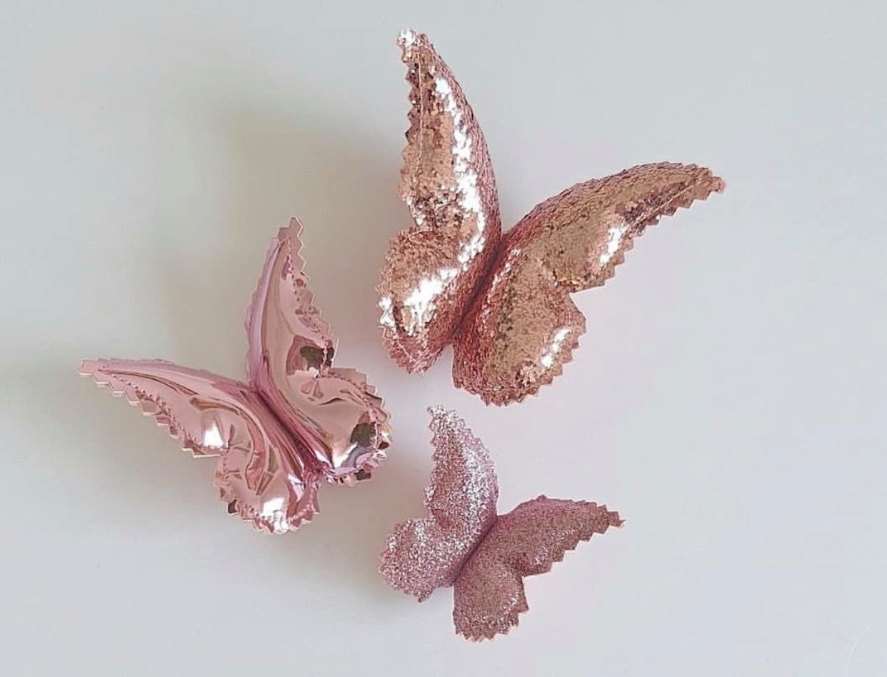 3 Smukke Sommerfugle Rose Pink Glitz - Little Custom Creations
