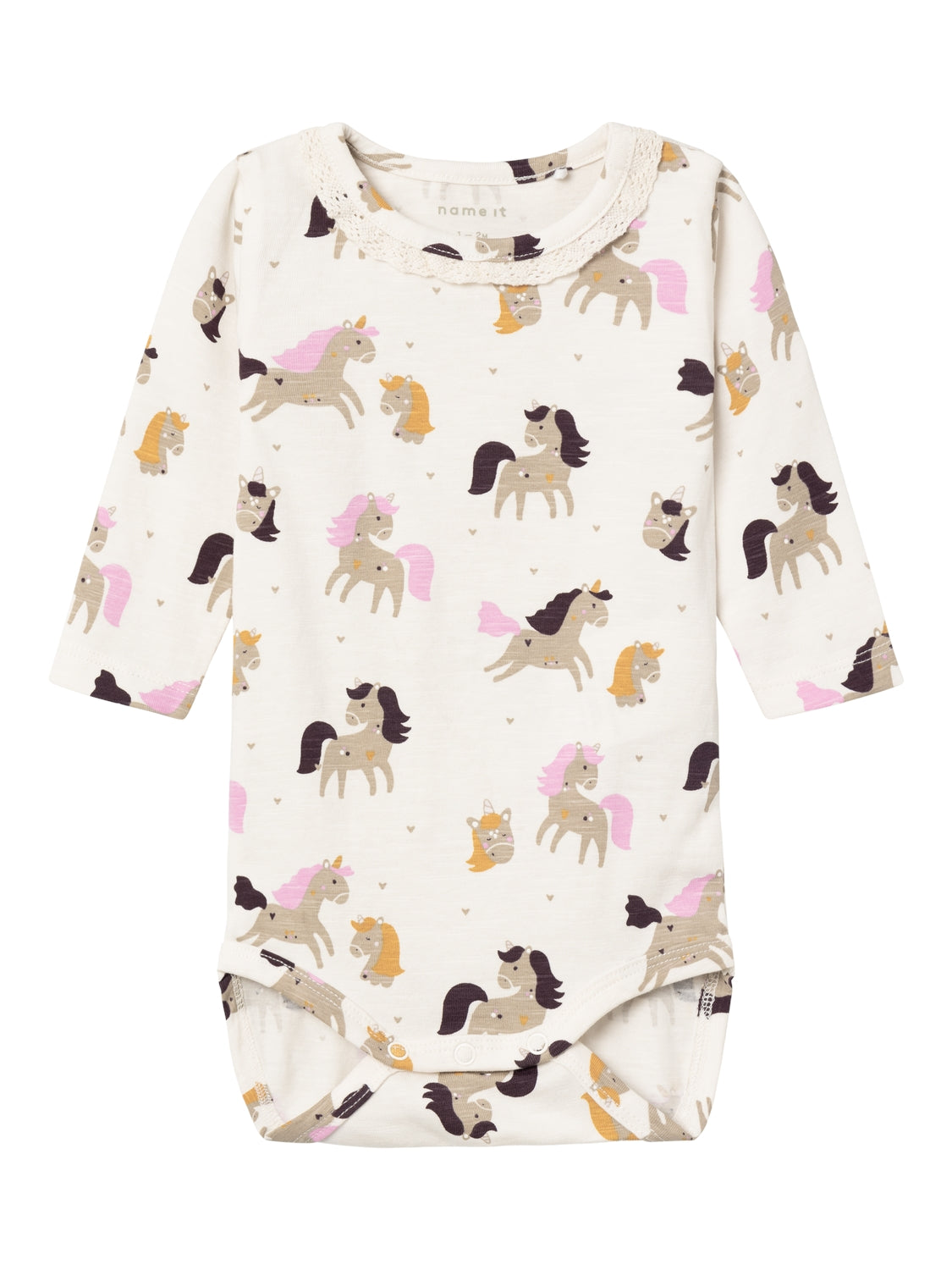 Name it Leni Body med det sødeste heste print i en lækker farve.