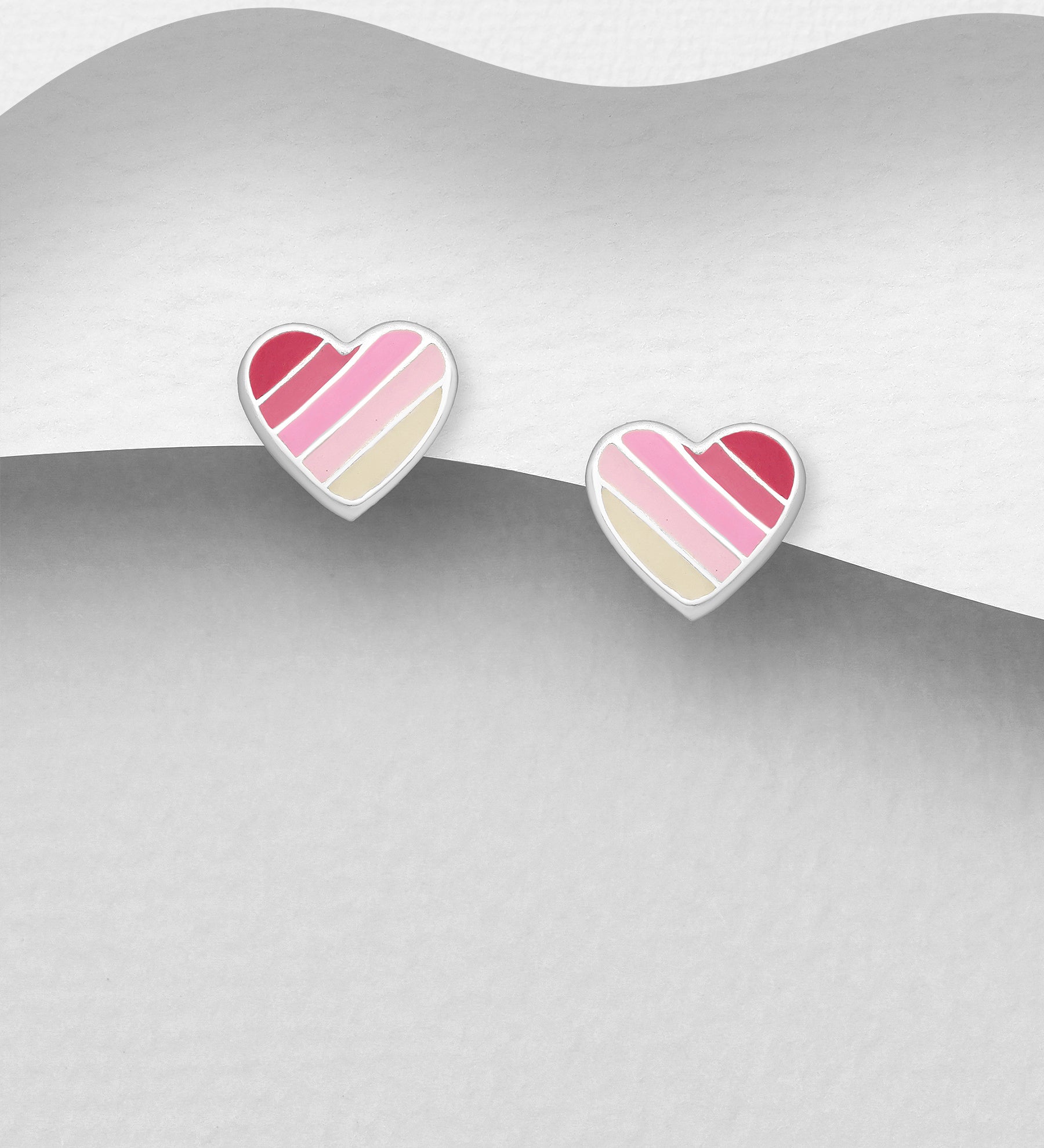 Ørestikker Sølv Hjerte - Regnbue / Lyserød